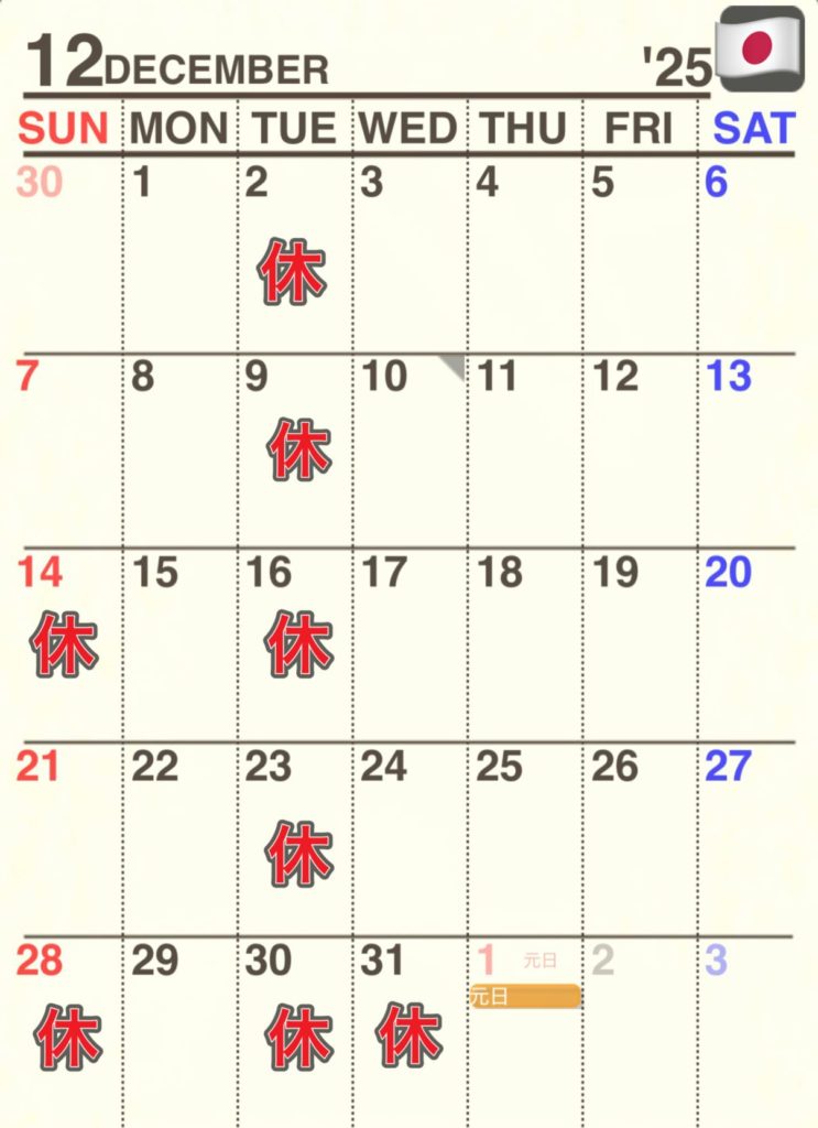 当クリニックは本日で本年の営業を終了させて頂きました。