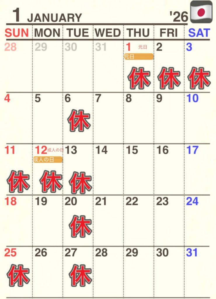 新年は1月4日日曜日より通常通り営業をさせて頂きます。